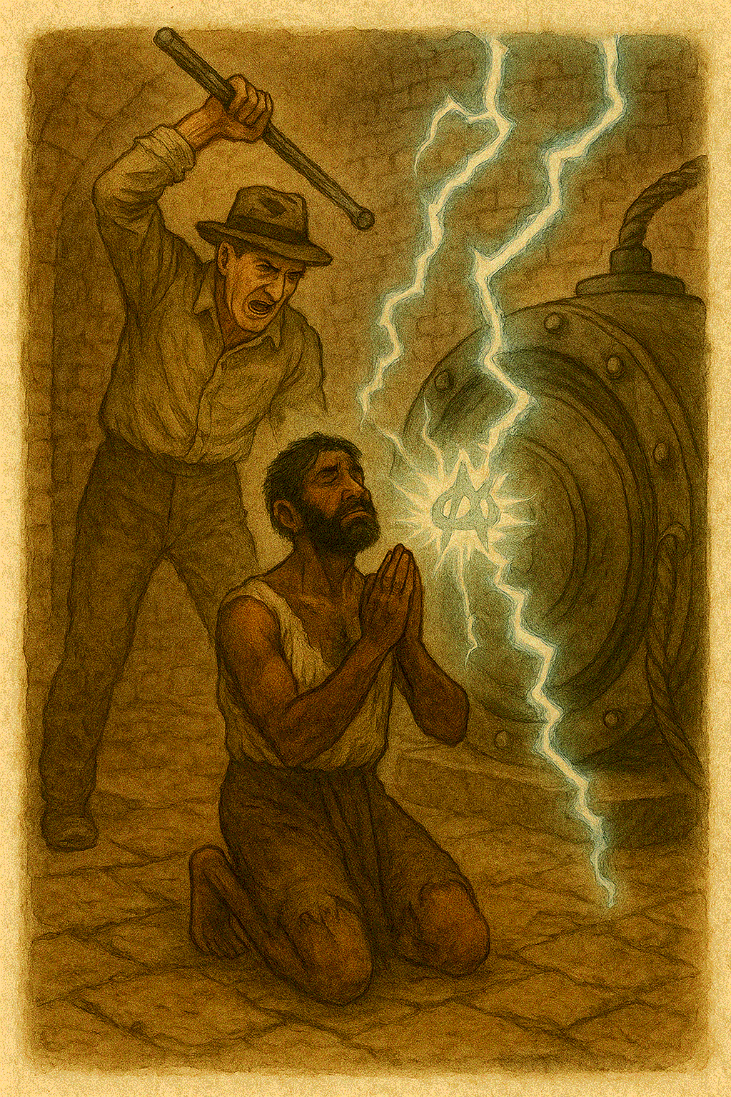 В центре сюжета рассказа – индиец Азума – зи, который трудится под надзором жестокого инженера – англичанина на электростанции в Кемберуэлле. Видя в динамо-машине живое божество, Азума-зи молится предмету о помощи – избавлении от мучений. Постоянные издевательства и унижения в итоге доводят индийца до безумия – он убивает мучителя, кинув его на динамо и в итоге по иронии судьбы и сам погибает от «рук Бога Динамо».
