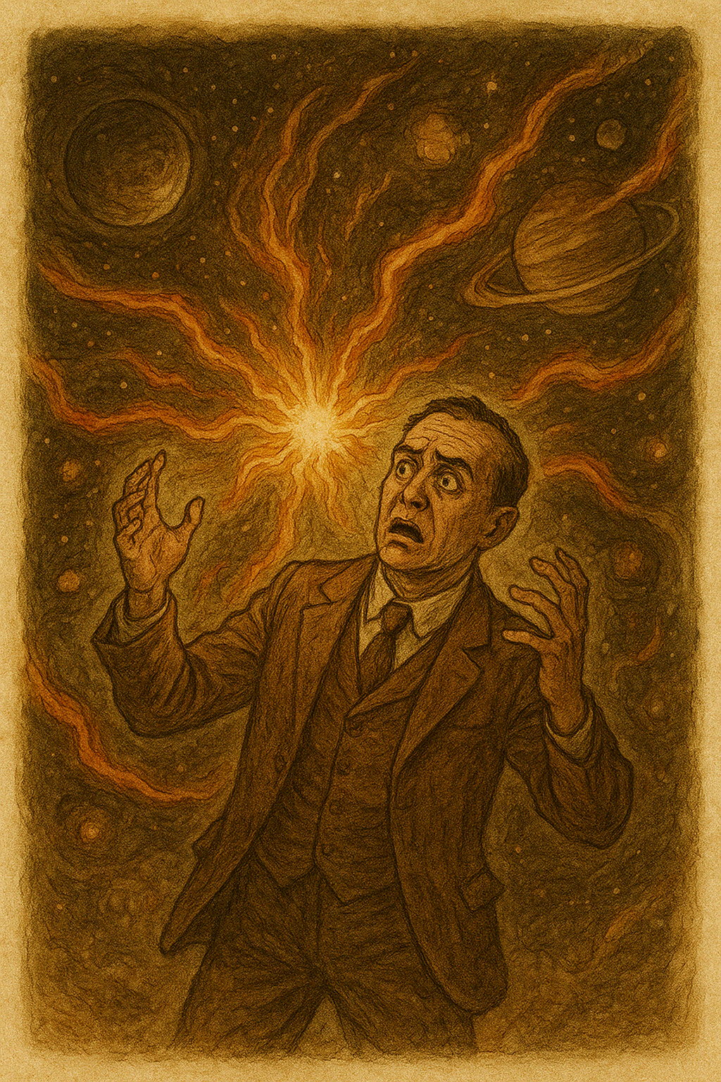 Небольшой рассказ – фантасмагория на тему того, как учёные обнаружили новую звезду на небе. Сначала все посчитали это лишь удивительным открытием, однако маленькое пятнышко света стремительно увеличивалось в размерах и вскоре некоторые члены научной академии подняли тревогу. Внезапно Землю сотрясают чудовищные катаклизмы: землетрясения, цунами, потопы, которые уносят миллионы жизней и ввергают человечество в мир темноты и голода. Однако, разрушенная Земля в итоге получает второй шанс, а последствия разрушений на нашей планете наблюдают марсианские астрономы!