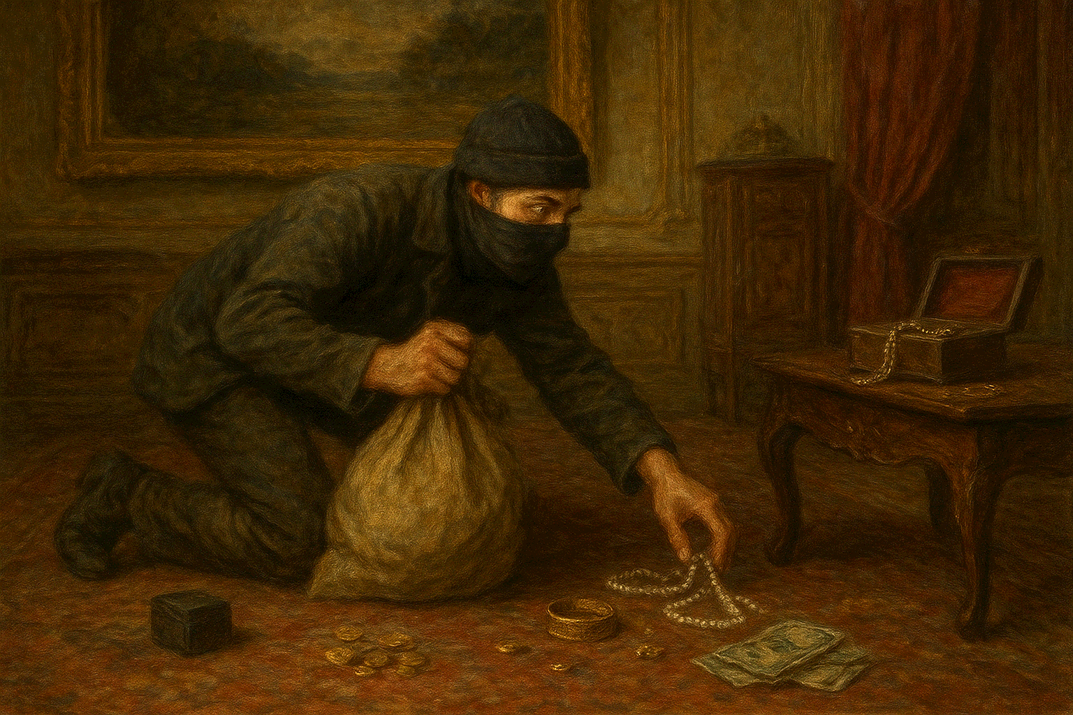 «Шито белыми нитками» — это исповедь жестокого преступника, признавшегося своим приятелям в убийстве довольно состоятельной женщины. Прошло много лет с тех пор, однако негодяй не понёс за содеянное абсолютно никакого наказания. Растяпа в ходе своего злодеяния, оставил целый ворох улик и зацепок, как в доме старухи, так и в собственном, однако ирония судьбы заключается в том, что полиция и местные жители просто не могли поверить в причастность такого неумёхи к делу и убийцу в итоге оправдали, осудив при этом ни в чём неповинного человека.