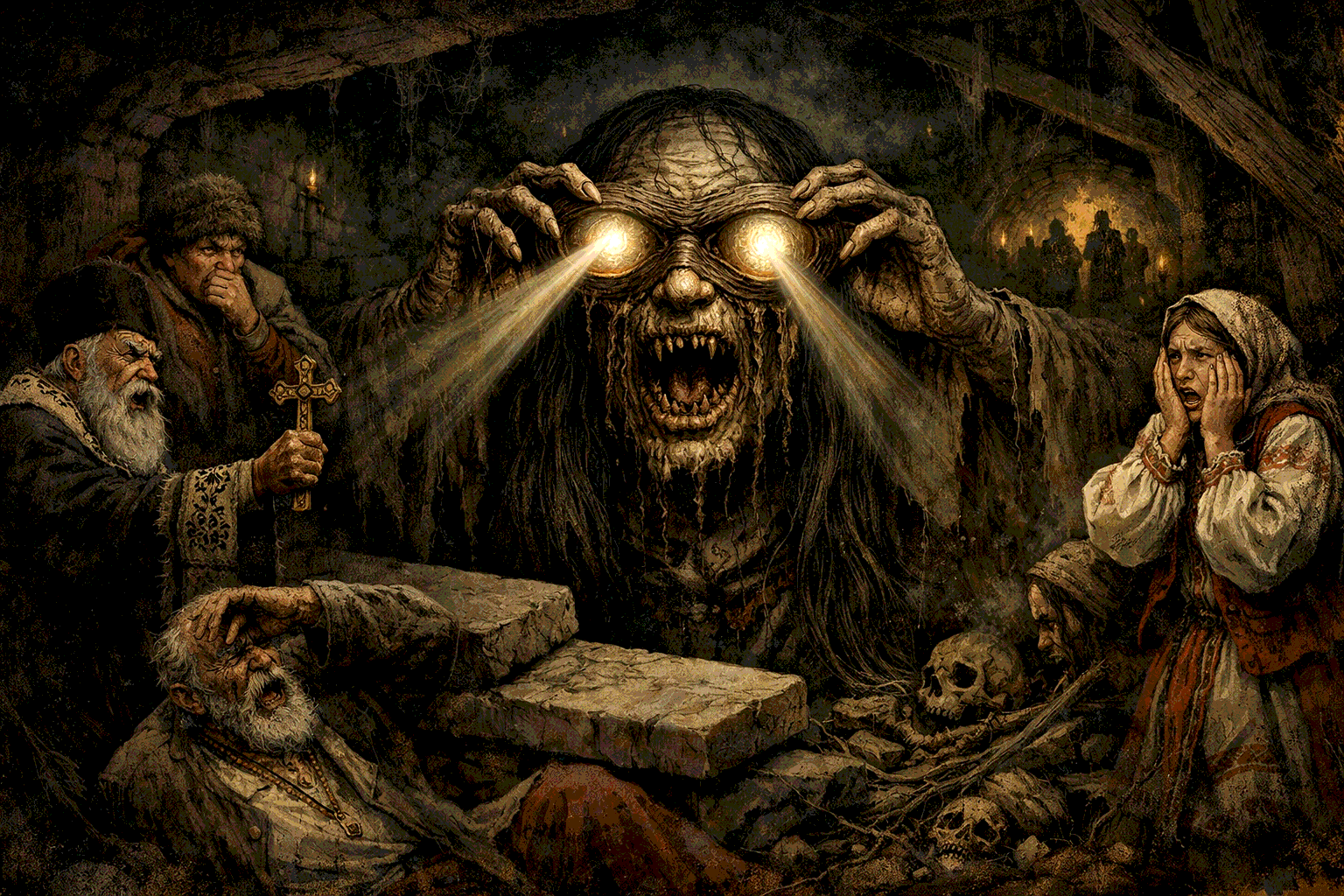 Владыка подземного мира - Вий управляет существами, связанными с миром мёртвых и нечистой силой, вроде вурдалаков и упырей.