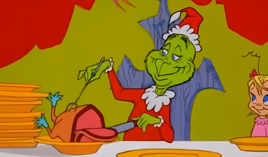 В какой-то момент, решив, что Рождество заключается исключительно в подарках и праздничной еде, Гринч переодевается в классический костюм Санта-Клауса и в рождественскую ночь крадёт абсолютно все подарки и другие атрибуты праздника у жителей Ктограда. Но на следующее утро, Гринч обнаруживает, что люди продолжают радоваться и праздновать – они поют, несмотря на утрату материальных вещей.