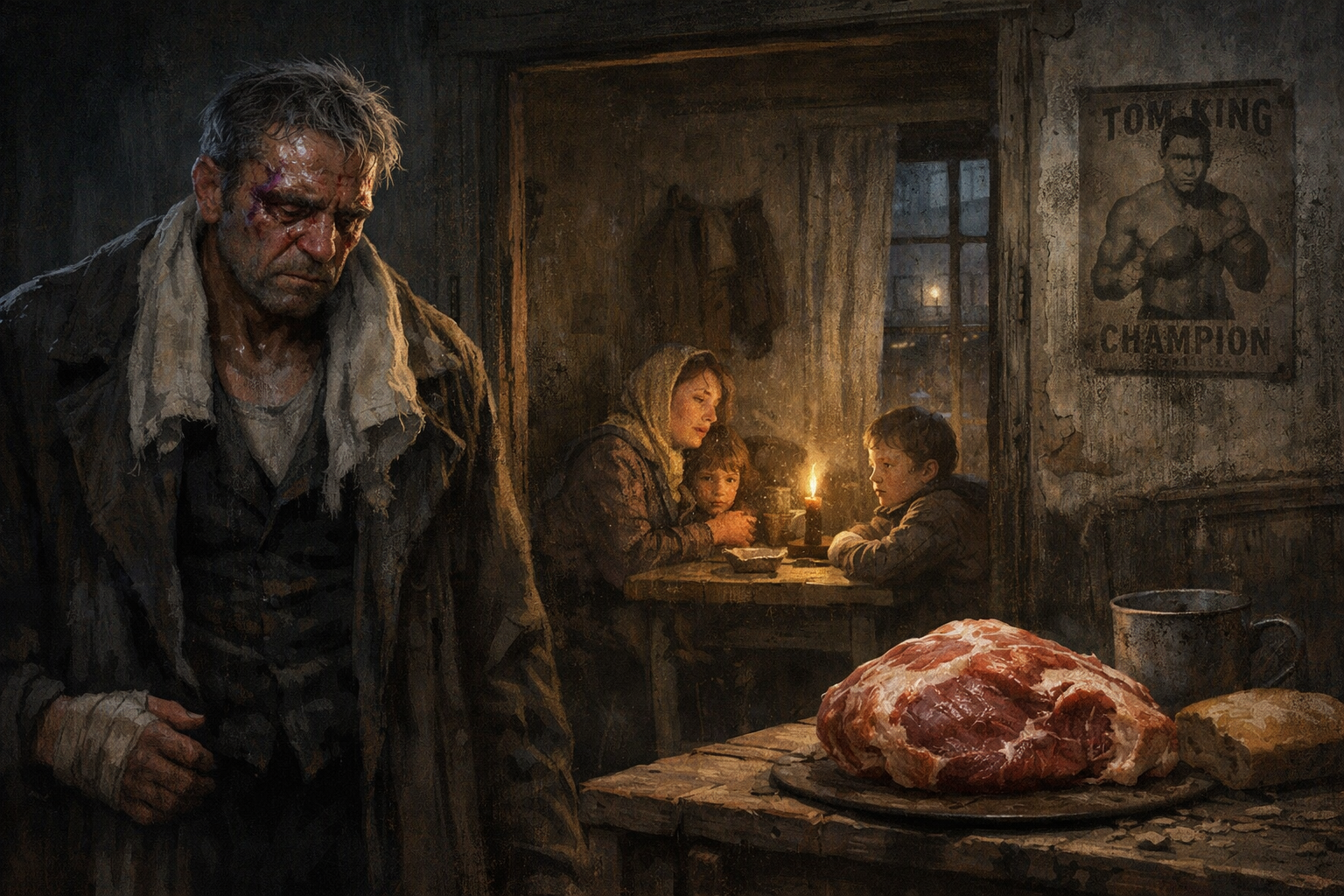 Стареющий профессиональный боксер Том Кинг живёт в нищете вместе с голодной женой и детьми. Уже через несколько часов бой, от которого зависит их выживание. Обессиленный от голода Кинг всё же выходит на ринг против молодого и сильного Сэндла, понимая, что это схватка Старости с Молодостью. Двадцатилетний опыт в боях и умный подход к схватке почти приносят ему победу, но сил всё же не хватает, не только из-за возраста, а из-за банального голода. В решающий момент Молодость берёт своё: Кинг проигрывает, остаётся без денег и возвращается домой сломленным, впервые по-настоящему осознав боль тех стариков, которых когда-то побеждал сам.