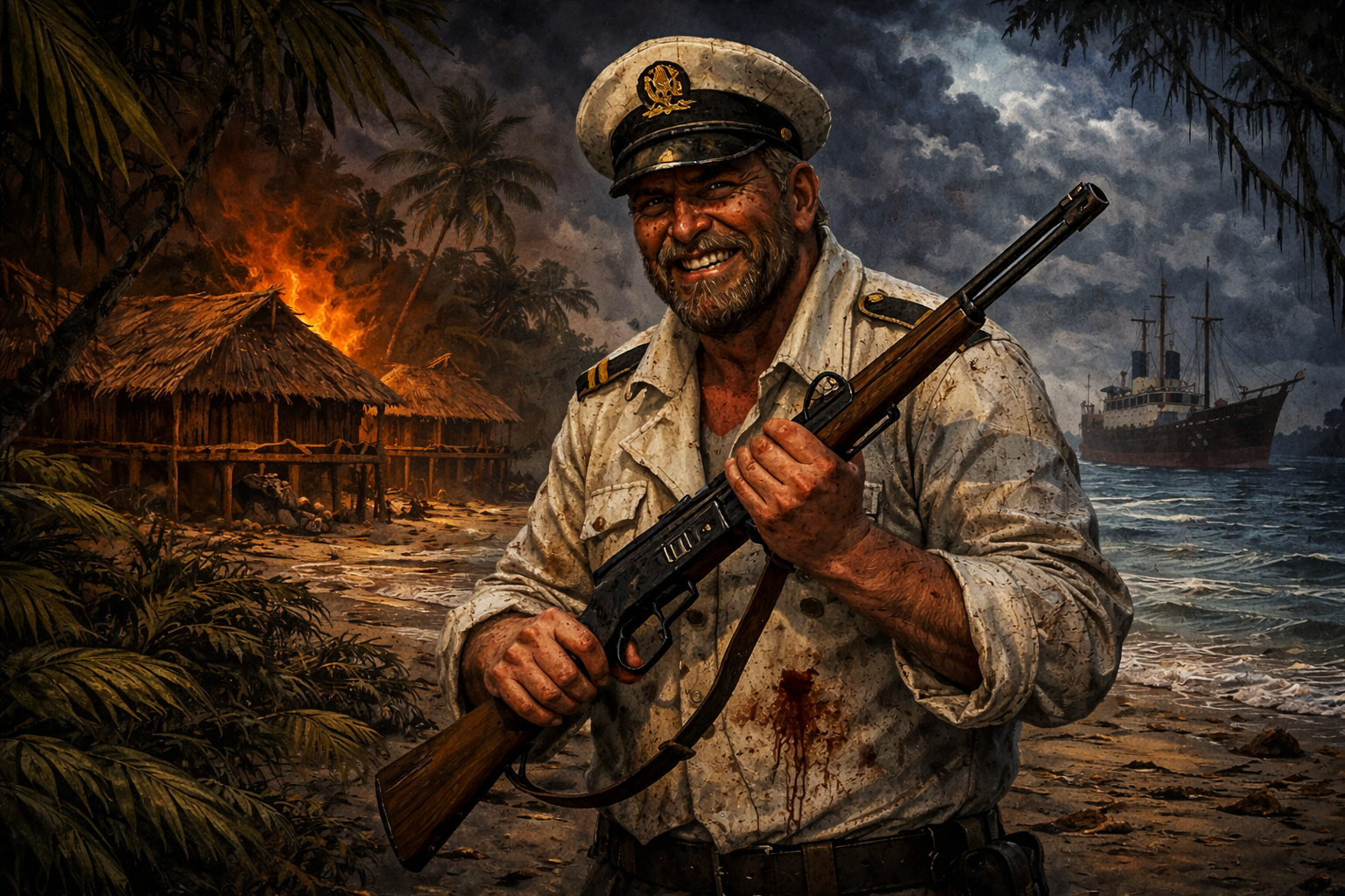 Англичанин Берти Аркрайт – импозантный, но чрезмерно впечатлительный и нервный молодой человек, отправляется на Соломоновы острова, чтобы «пощекотать себе нервы» и познакомиться с первобытной жизнью дикарей. Но вместо экзотического приключения он попадает в мир чудовищного насилия, лжи, расизма, людоедства и циничных «несчастных случаев», где убийства прикрываются болезнями, а жестокость капитана судна и местных жителей считается нормой. Чудом выжив, Берти без оглядки бежит обратно в цивилизацию, унося с собой пережитое нервное потрясение и страх.