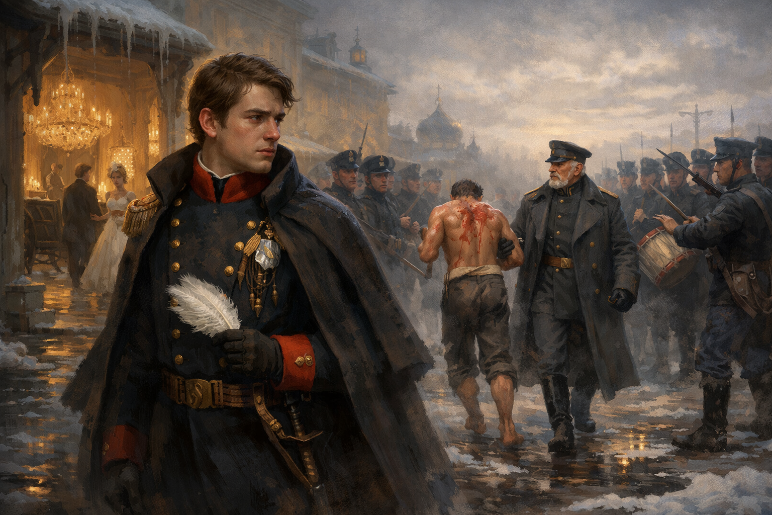 Это история о молодой любви и о том, как один шокирующий эпизод способна поменять жизнь человека навсегда. Герой вспоминает великолепие светского бала, танцы, музыку, своё состояние полного счастья, надежды и любви. Предмет его обожания – юная и прекрасная Варвара почти стала второй половинкой героя истории. Но утром после бала он становится свидетелем жестокого наказания - публичной порки солдата, которой руководит отец его любимой. Этот контраст между красотой и насилием, между танцем и унижением пробуждает в нём глубокое моральное осознание и переворачивает весь мир ценностей.