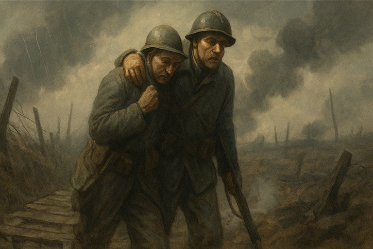Очень тронул кульминационный момент в книге, когда во время ночного наступления Французской армии на глазах рассказчика погибает практически вся его рота. Пулемётные очереди, разрывы снарядов, ползущие по грязи сотни тяжело раненных, стоны, крики. Внезапно, фосфорный снаряд попадает прямо в друга главного героя, который находился рядом и тот в миг сгорает и испаряется, словно его никогда и не было на свете. Огонь, который видит главный герой в пылающем силуэте товарища, демонстрирует всю нелепость ситуации, безалаберное командование, бессмысленные миллионные жертвы, которые приносят на пир кровавому Марсу безответственные и алчные представители системы.